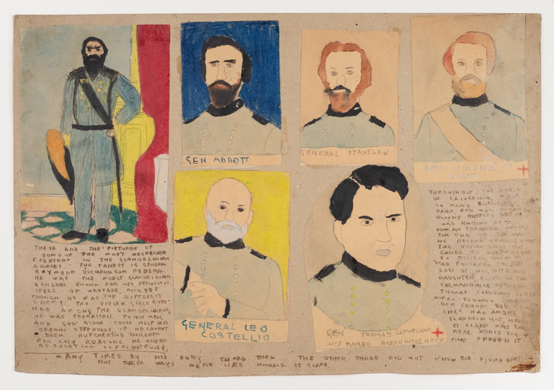 Featuring work by: James Castle, Felipe Jesus Consalvos, Henry Darger, William Edmondson, William Hawkins, Julian Martin, Sister Gertrude Morgan, Philadelphia Wireman, Elijah Pierce, Pauline Simon, Bill Traylor, Eugene Von Bruenchenhein, Joseph Yoakum, Adolf Wölfli