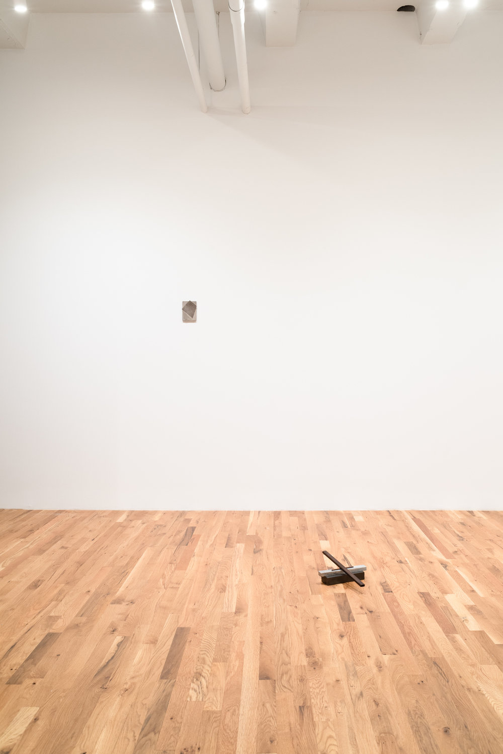 Material Gestures is Bill Walton’s (1931–2010, worked in Philadelphia) second solo exhibition at Fleisher/Ollman. Walton’s sculptural process is defined by the manner in which wood and metal are stacked on top of each other; linen is folded into forms frozen by paint; and objects are tooled and shaped from various metals like copper, aluminum, lead, and brass. His objects are at once simple and complex, as Walton had an uncanny ability to unite disparate materials into elegantly poetic statements. Bringing together the austerity of Minimalism with a respect for handmade precision, many of his works may trick viewers into believing that what lies before them are found objects, rather than the rigorously crafted sculptures that belie their subtlety. Exploring Walton’s predilection for synthesizing different elements, a group of small sculptures composed of hooked glass rods nested within metal wrenches are presented on a table in the center of the gallery. Following the theme of the small sculptural gesture, viewers will be treated to works that unite unexpected materials like lead and soap; and copper, electrical tape, and paper.