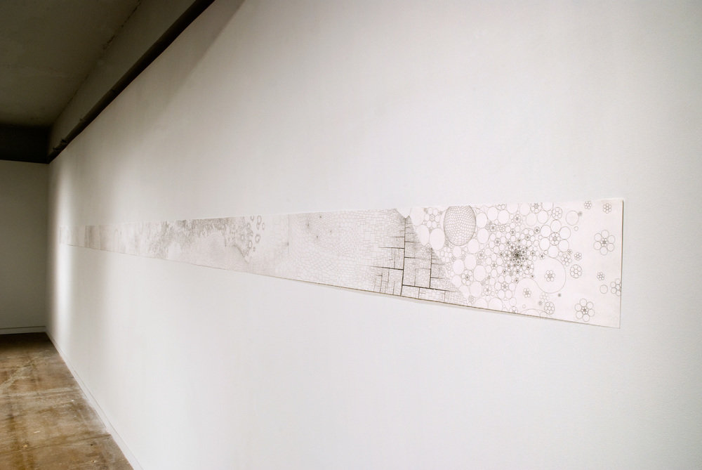 Pollock's intricately constructed paintings explore color, light and space. A newly completed ink drawing diagrams the free interplay of geometric figures over its 20-foot length. Also on display, will be a grouping of small, informal and exploratory paintings that generously provide insight into the artist's process.