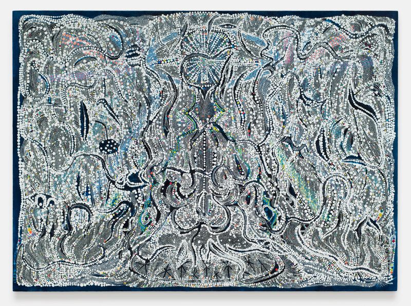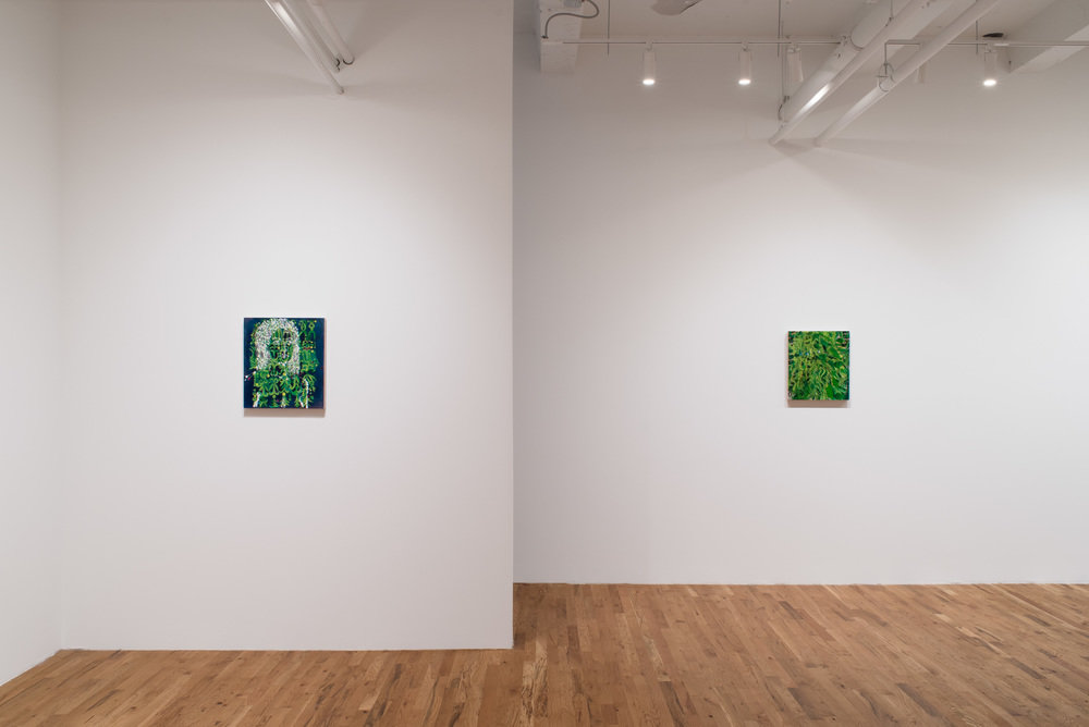 In Second Sight, Sarah Gamble continues to explore inner and outer worlds through her signature approach to painting, incorporating bold color choices and intricate netted patterns that move her work in new directions. Using both abstract and representational strategies, Gamble builds on her previous paintings of intricately layered dots and energy bursts that conjure a universe abundant with celestial bodies (at times forming patterns that suggest human ones) as well as more terrestrial images of dense foliage that are nonetheless otherworldly. According to Gamble, the dots can be understood as atomized matter depicting the re-organization of animate and inanimate objects into new states of being as they enter into other dimensions.