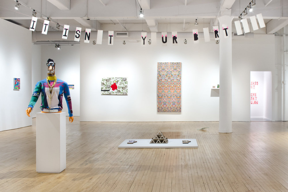 Of the eighteen artists gathered here several are internationally known whose support of their not-as-recognized brethren is invaluable. The downside for these less validated though just-as-deserving practitioners is isolation and lack of acknowledgment inside their small artistic ecosystem. “Sonoran Hot Dog Stand” is an attempt to at least partially rectify that situation. From the resolutely abstract and objective to the figurative to the trippy to the ceramic, from the scrappily representational to the humorously and determinedly conceptual, from pop naïve to hard-edged to soft sculpture and calligraphic minimalism, the unbridled and the meticulously controlled exist side-by-side. The artwork might or might not proclaim a literal “Tucson-ness”—the heat, quiet, darkness, and aroma of creosote after rain—but undoubtedly is informed by its context. Though local in that regard, collectively it runs roughshod over any limitations of restrictive regionalism to be art of consequence regardless of where it is made or seen.